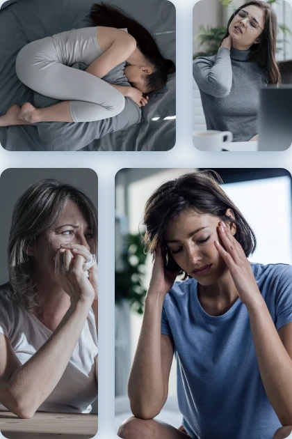 Ciclos hormonais desregulados, especialmente em mulheres, associando a Enxaqueca a fases do ciclo menstrual ou desequilíbrios nos eixos hormonais.